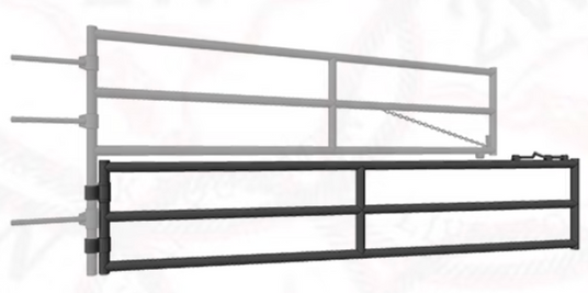 The 2W Corral Series Heavy Duty Split Gates are specifically designed for maternity uses with a maternity system. The split gate allows calves to feed while limiting cow movement. The gate hinge's threaded rods are a 1" diameter and 12" long allowing adjustability in gate width. It is recommended to drill 1 1/8" diameter holes to install. Available with chain latch.