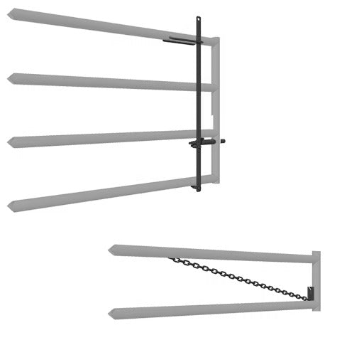 The 2W Corral Series Heavy Duty Swing Gates are ideal for entry into high pressure corral systems and high pressure perimeter gate applications. The gate hinge’s threaded rods are 1” diameter and 12” long allowing adjustability in gate width. It is recommended to drill 11/8” diameter holes to install. Available with either chain latch, or horse back latch options.